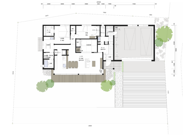 この3LDKの平屋は、施主の求める開放感と自然な空気の流れを考慮し、心地よい暮らしを提供する設計となっています。リビングに設けられた開放的な吹き抜けが、視覚的な広がりと共に風の通り道を生み出し、住まい全体に爽やかな空気循環をもたらします。また、土間とリビングが続くデザインは、内外の繋がりを感じさせ、ゆったりとした生活空間を実現。さらに、各部屋の動線も工夫されており、家事を効率的に行える導線を確保。これにより、日々の家事時間を短縮し、家族との楽しい時間をより多く持つことが可能になります。施主のライフスタイルにぴったり寄り添ったこの間取りが、暮らしに豊かさを添えます。