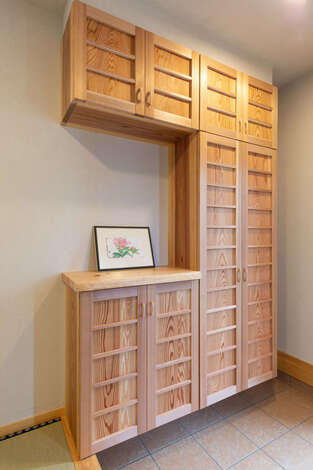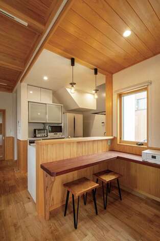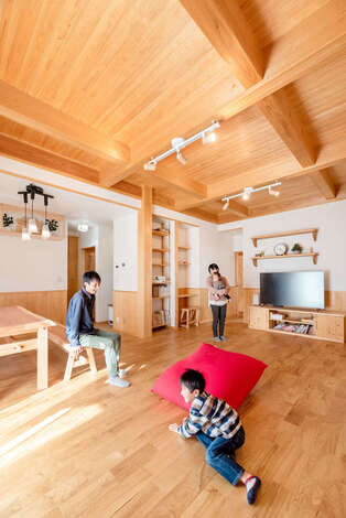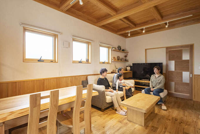 「0宣言の家」は完全注文住宅。昭和56(1981)年創業の同社では、当初から培ってきた木の家づくりの経験と熟練の大工の技術を活かして、和風建築はもちろんのこと、和モダン、洋風など、施主さんの希望に沿ったさまざまなデザインの家を提供する。さらに、他社ではオプションになるような建具やカウンター、テレビボード、ニッチ、クローゼット収納棚といった造作も、無垢材を使った標準仕様に含まれている。施主さんから特に好評なのが、収納部分。良質な無垢材の効果で、防虫材・消臭材・湿気取り材を用意する必要がないという声も寄せられている。施主さんの要望を反映した家全体のコンセプトに合わせ、設計や現場作業で細部まで相談しながら仕上げていく同社の家づくり。性能やデザインはもちろん、すみずみにまで配慮が行き届いた理想の住まいが叶う。
