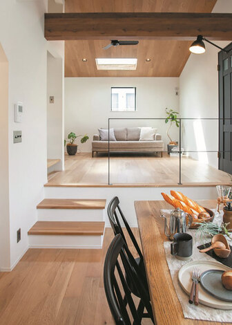 どんなにデザインが素敵な家でも、どんなに住みやすい間取りでも、地震や災害に弱く、夏暑くて冬寒い家では安心して暮らすことはできない。建物全体で地震の揺れを受け止める2×4工法(枠組壁工法)で建てる『オレンジハウス』は、構造計算(許容応力度計算)を行い全棟で耐震等級3を取得。さらに制震ダンパーも標準搭載し強固で安心な家を叶える。また、高性能グラスウール、樹脂・アルミ複合サッシを標準仕様とし、ZEH仕様レベルの高い断熱と気密性能を発揮して、住んでからの光熱費がかかりにくい低燃費で快適な暮らしを実現する。