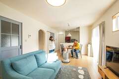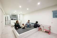 笑顔が集う2階リビング。ペットも大満足の快適な住まい