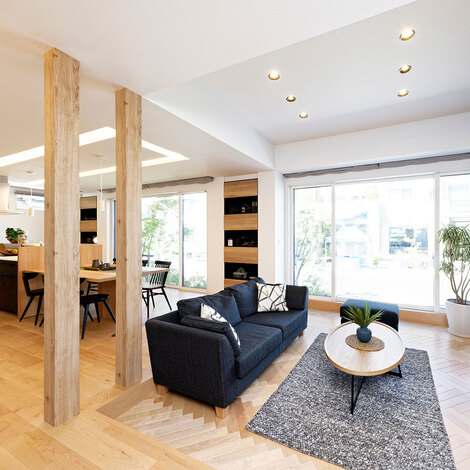 どんな家が暮らしやすく感じるかは、住まう人によって違うもの。『アイ工務店』では、施主さんの要望や条件に合わせて、設計する単位を「尺モジュール」と「メーターモジュール」から選べ、敷地を有効に使った理想的な住空間を生み出す。さらに、LDK、居室、収納は、1mm単位の自由設計を実現する❝パーソナルモジュール❞でプランニング。ダイニングテーブルやベッドなどの家具に合わせて調整することで、空間にゆとりを生み出し日常の快適性がアップする。また、将来に備えた収納空間や趣味を楽しむ秘密基地にしたいスキップフロアの活用や、子どもとの買い物からの帰宅後がスムーズになるオリジナルの「おかえり導線」の提案で、家事負担を軽減し、日常生活での懸念を解消。家族の暮らしに合った、長く暮らせる愛着のある家を実現する。