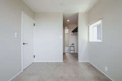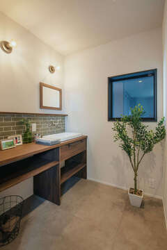 洗濯家事で階段を使うことなく、洗ってすぐ干せるようにと、ランドリールームと部屋干しスペースをまとめて2階に設置。日によって外干しもできるようインナーバルコニーも設けた。子ども部屋は北面に広がる茶畑を借景に勉強できるように窓の位置と大きさを工夫。おしゃれな夫妻のために寝室内のウォークインクローゼットも大きめに確保した。