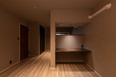 リビングの収納と、隣接する納戸。納戸は室内干しのスペースとしても使えるように、物干し用のバーを設置してある