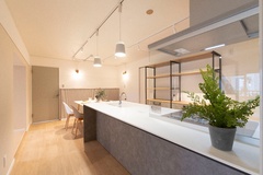 ダイニングと並んだコミュニケーションキッチン。リビング、畳コーナー、庭まで見渡せて奥さまも安心。スタディコーナーも設置