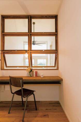 吹き抜けとの間をルーバーのガラス窓で仕切り、明るく開放感のある空間に仕上げました。