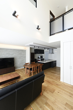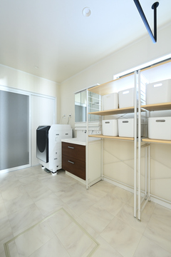 共働きのご夫婦なので、室内干しのスペースを設けたり、家族のコミュニケーションが取りやすいように吹抜けを設けたりといった工夫を凝らしました。