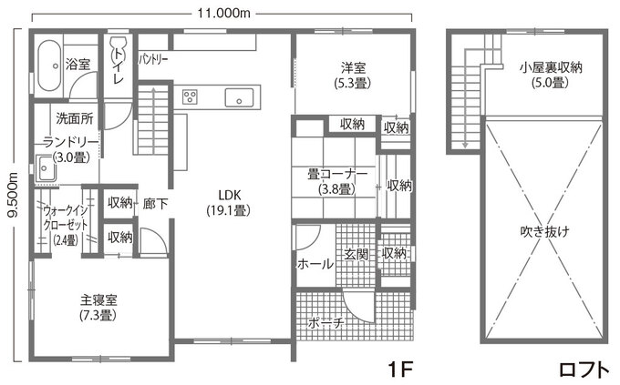 2LDK・平屋 (畳コーナー、小屋裏収納)