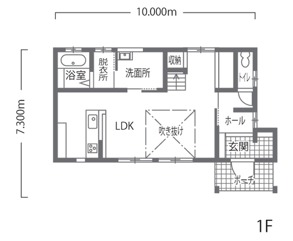 なるべく廊下を設けずに坪数を抑えながら、勾配天井によって広がりのある空間をデザインしました。家事ラクな動線など、暮らしやすさを重視した提案も随所に活かされています。