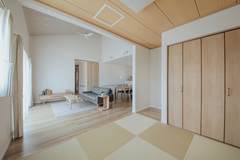 親子お二人で住む平屋を希望されたY様。 足がお悪いお母様の暮らしをシミュレーションしながら、移動の負担の軽減と転倒防止を第一に考え、バリアフリーや座って入れるバスルーム、手すりの設置など、細部まで配慮しました。