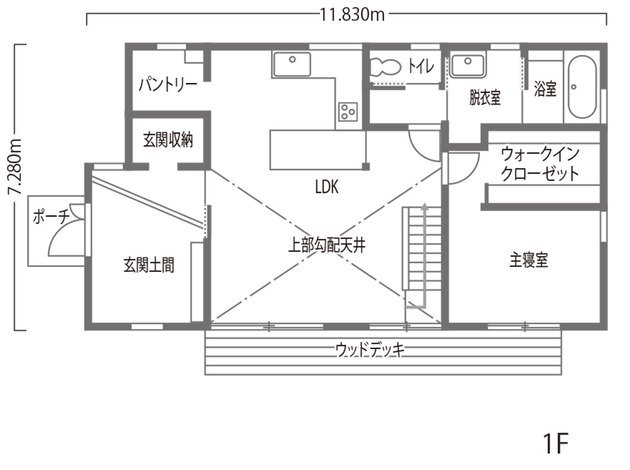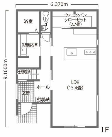 居室と収納を明確に分けて、スッキリと暮らせる工夫を。クローゼットと洗面室をつなげた動線は、毎日の家事時短を叶えます。勝手口に面した洗面は、アウトドアや外のスポーツをする方にオススメしたい間取りです。
