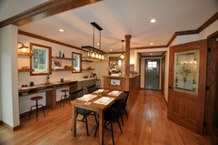 おしゃれが大好きなご夫婦。特にご主人は絵画や釣り、音楽など多趣味な方で、家に対する要望も多数お持ちでした。レザー張りのシューズクローク、特注メラミンのリビング、ダイニングセットは造作です。