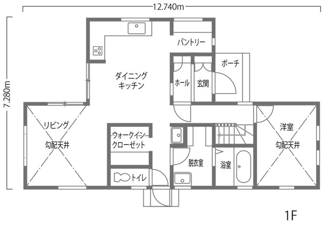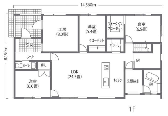 キッチンやランドリールームを回遊動線にすることで、家事動線を確保しています。これは、日々の生活の中でより快適に過ごすための工夫の1つです。こうして、平屋の利便性に間取りの工夫を加えたことで、より暮らしやすい住まいが実現しました。