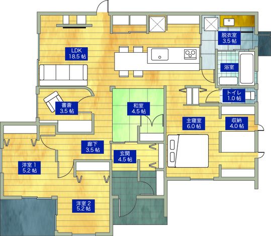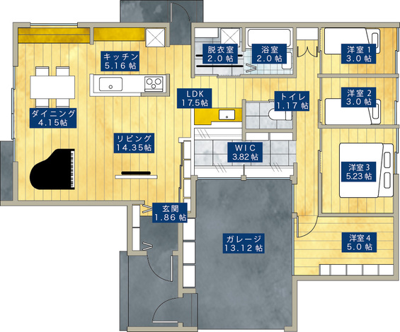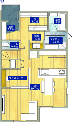 4LDK・1.5階建 (マスターベッドルーム キッズルーム2 書斎)