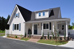 北米住宅の代表格で日本でも根強い人気のアーリーアメリカンの家。板張り風のラップサイディングの外壁にドーマーを乗せた切妻屋根、連続する柱で支えたカヴァードポーチで構成されている。