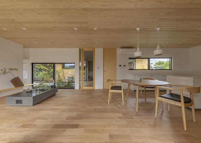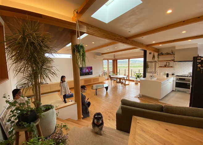 高価な機械換気設備を導入すれば、快適な室内環境はいくらでも手に入る。しかしできるだけ自然の力を利用して快適な室内環境をつくろう、というのが、パッシブデザインの考え方。これは環境先進国と呼ばれるドイツで生まれた最先端の設計手法で、太陽の光や熱、自然風といった自然のエネルギーを利用する。例えば、屋根の角度や植木の位置を工夫して、夏の暑過ぎる日差しは遮り、冬の暖かい日差しは取り入れる。また、家の南側には大きな窓を設け、北側には高い位置に小さい窓を設けると、大きい窓から小さい窓へと気流が上に流れ、風の通り道になる。こうして機械を使わなくても健康的でナチュラルに快適な家をつくることができるのだ。同社ではこのパッシブという考え方を間取りづくりのベース取り入れているため、換気に予算がかけられない場合でも室内環境は快適だ。