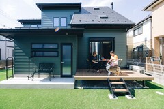 ワンちゃんが元気いっぱいにはしゃぎ回る姿を、ワンちゃんと同じ顔をして楽しむご夫婦。みんなの団らん時間が流れるリビングダイニング周りの空間。それとは別に、個々のこだわりの詰まった趣味空間も充実してます。ご主人の好きなものだけが詰まった男の夢みたいな部屋や、奥様がゆったり好きな時間を過ごせる和モダン部屋や読書スペース。ネコちゃんは自由気ままに家中を行ったり来たり。H様邸は、そんな毎日のくらしを目一杯楽しめる居場所がたくさんある空間です。