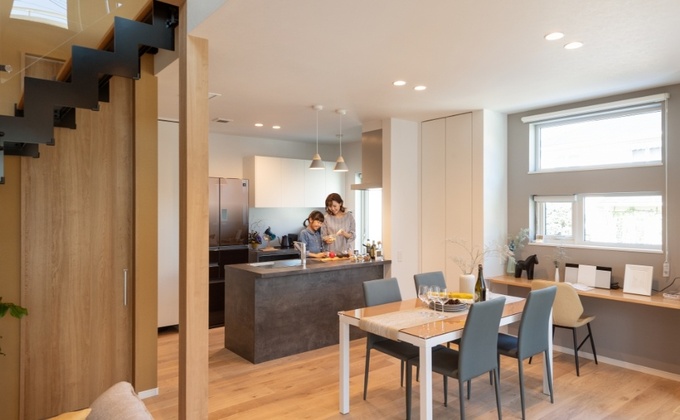 同社が誇るもう一つの強みは、その高い施工品質だ。標準で外張り断熱、ダブル断熱に対応しており、他に類を見ない快適性を実現。断熱等級5~7、全棟気密測定も行い、C値0.5以下を保証するなど、省エネ・高気密・高断熱の家を提供。床暖房や全館空調に依存しない快適さが魅力的で、エコ意識の高いユーザーにピッタリだ。