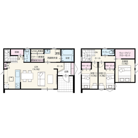 【1.5階/3LDK/26坪】スマート家事室付き1.5階