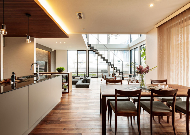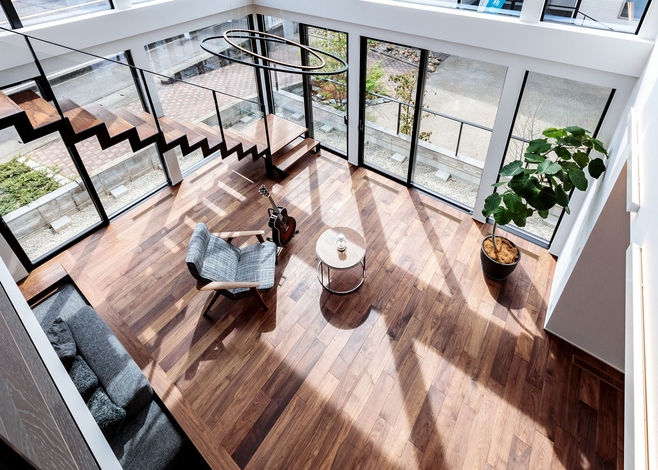 『AQ Group 東海支社』は、自由な設計と高いデザイン性で施主さんの理想を形にする。木造でありながら無柱の大空間を実現し、天井高5.6mや約30畳のリビングを設けることが可能なAQダイナミック構法を採用。施主さんのライフスタイルの変化にも対応し、間仕切り壁を自由に変更できるため、将来的なリフォームも容易だ。女性デザイナーが同席し、施主さんに寄り添った提案をすることから、居心地の良い住まいを創り出すことができる。