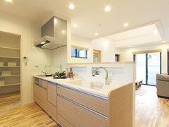広々としたLDKは、自然光がたっぷりと入る明るい空間。家族が集まりやすい居心地の良いレイアウト。和室