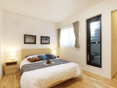 明るい光が差し込む、心地よい寝室。シンプルなインテリアで、リラックスできる空間を作り出している。外観