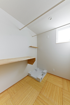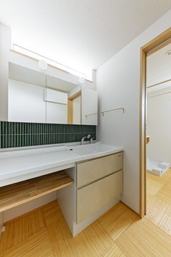 タイルを採用し、一部造作の洗面。ランドリールーム
