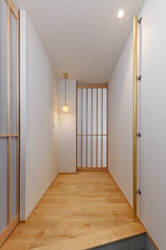 ワーロン紙を使用した障子の造作扉を採用。玄関ホール