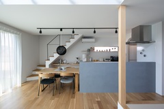 シンプルでスタイリッシュな外観の中に将来性を考慮し、1階で生活が完結する半平屋風のお家が完成。