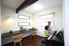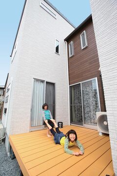友人から「不思議な外観の家」と言われる少し変わった形の住まい。いろいろな形の「箱」が連なっており、家の中への興味がかき立てられる。Iさん一家が手に入れたのは変形の土地。この土地を最大限に活かしてくれる工務店を探していたところ、たまたま訪れた現場見学会で出会ったのが『アフターホーム』の佐野さんだった。光を最大限に取り入れられるよう「箱」を並べ、小さいながらもアウトドアリビングとしても楽しめるウッドデッキを内に抱いた独創的な住まい。『アフターホーム』の豊かな発想は、Iさん一家をとりこにする提案だった。「満足度100%の家。毎日家にいて本当に楽しい」と語る。さまざまな形の窓、コストは抑えながらも随所にこだわった壁紙、柄を楽しむカーテン使いなど、夫婦それぞれの個性もふんだんに盛り込んだシンプルモダンな家。仲良し家族の笑い声とともに、訪れる人を魅了してくれるお宅だ。