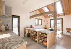 すべてが自然体のS様ご夫婦。自分たちのオリジナルなライフスタイルを楽しむための家創りでした。ムクの板、タイル、モルタルなどいろいろな素材を使った、どこにもない世界で一軒の素敵な家です。