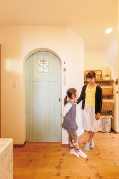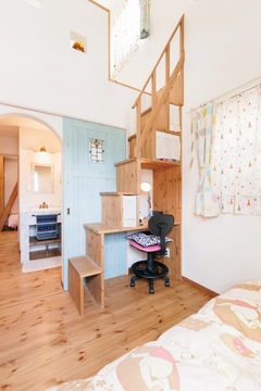 プロヴァンス住宅が好きな奥さまにご主人も賛同して始まったA邸の家づくり。人気のエリアで見つけた土地は変形地だったが、スペースに無駄がなく、お二人の希望をすべて叶えて収納もたっぷりの間取りが決め手になったという。うねうねの壁、おうちの中のおうちなどの『富士ホームズデザイン』ならではの手作りの装飾を取り入れ、造作の棚や収納家具、タイルカウンターも思いのまま。「自由に作れて、バランスが悪ければそう言ってくれる。できないことも代わりの案を出してくれて、こちらの注文に親身になって応えてもらえました」と奥さま。住み始めて2年経った家はいい感じに落ち着き、コンパクトに見える外観からは想像もつかないほど、室内は広く感じられる。訪ねてきた家族や友人からもそう言われると、嬉しそうに話してくれた。