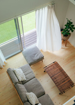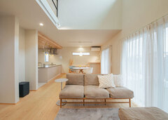『フジモク』さんで実家のプランを検討しているときに、結婚することになり、そのまま自分たちの家もお願いすることに。無垢を使った空間の雰囲気が好みでしたし、物腰がやわらかく、要望を1つでも叶えようと努力してくれた小池さんなら、安心してお任せできると思いました。アウトドアストッカーや室内に入ってすぐの洗面台、開放的な吹き抜けのLDKなど、私たちが必要とする空間やSNSで集めた好きなテイストを、うまくプランに落とし込んでもらえました。不便や不満がまったくない、快適すぎる家ができました。
