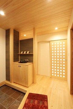 私たち家族が特にこだわったのは自然素材。マンションではなかなか自然素材が使えなかったので、一戸建てを建てるならできるだけ自然素材で…と決めていたんです。エコフィールドさんショールームで、無垢材や塗り壁の上品な心地よさに一目惚れし、同じ雰囲気の家が欲しいとお願いしました。木材はすべて国産材を使い、外壁は「シラスそとん壁」に。自然素材ならではの心地よさはもちろん、メンテナンスフリーで、時が経つほどに味わいが出てくるところもお気に入りです。ピアノ教室をしているため、1階にはレッスン用の防音室も設置。同社は本格的な防音室を何件か施工されているので、その点も安心してお願いできました。ドアの入口の音符模様のステンドガラスなど、細かな部分のデザインにも配慮してくださって、レッスンの時間がぐっと楽しくなりました。