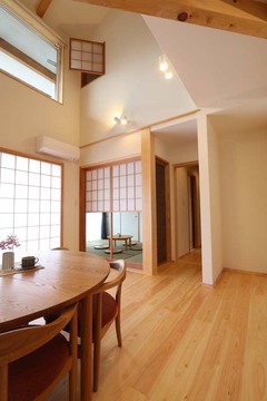 娘さんたちの結婚などでいずれは家族構成が変わることを考え、2階の部屋は可動式の家具で仕切ることを提案させていただきました。柔軟な間取りはその時々で自在に変化させることができ、将来的には、ご夫婦それぞれの趣味の部屋などに使っていただくこともできるようにおつくりしました。
