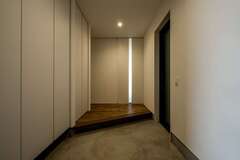 インナーガレージから玄関、洗面、ランドリー、浴室、ファミリークローゼットへとにつながる帰宅動線が特徴。LDKは25.8畳。