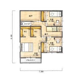 夫婦の主寝室には一人一つのウォークインクローゼットがあります。個人スペースとして分けて保管できるので、衣類などの紛失も防げます。 また、各部屋、収納を挟んだり、廊下を挟んでいるのでプライベートもしっかり確保できています。