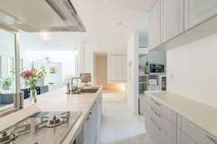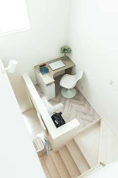 会社選びは、“好きな雰囲気”や“叶えたい暮らし”を軸に進められるのが一般的。しかし、Tさん夫妻が大切にしたのは、完成後も含めての”安心感”。奥さまの実家を手がけ、アフターで身近さを感じていた『HAPPY HOUSE』には実感としての「信頼」があった。洗練が漂う空間は、奥さまがSNSで集めたイメージの断片に、等身大のモデルハウスで気に入った要素をブレンド。玄関近くに配された浴室やキッチンへの動線など、機能性や利便性に対するご主人の希望もきっちり落とし込まれた。特筆すべきは、住宅や賃貸物件に囲まれているとは思えない明るさ。周辺環境を踏まえ計画された吹き抜けやスリットタイプの窓により、視線を気にすることなく光を招くことに成功している。桑原さんは実家建設時からの担当者。大きな安心に包まれて、「毎日感じている」という幸せは続いていく。
