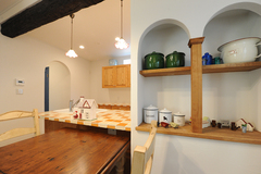 閑静な住宅地で、ひときわ目をひく南欧風の外観。「家を建てるなら、南フランスの田舎にある素朴な民家のような家をと決めていました」とご主人。玄関を入ると、木、珪藻土、タイルといった異素材がバランスよく融合した階段ホールが広がり、居心地のいい空間を演出している。暮らしの中心となるLDKは、無垢材と自然素材を惜しみなく使い、天井や垂れ壁にはRラインを多用し、全体を柔らかな雰囲気に仕上げた。キッチンと洗面台は輸入製品で、デザインと使い勝手を両立。毎日の家事時間が楽しくなったという。さらに、耐震等級3を取得し、トリプル樹脂サッシも採用したことで、耐震・断熱・気密性能も高いレベルで実現した。「好きなものに囲まれ、手を加えながら暮らしを楽しむことで、家にも愛着が湧いてきます」とほほ笑む奥さま。輸入住宅の家づくりに精通した『アイディートゥー 一級建築士事務所』だからこそ、理想以上の住まいができたと喜んでいる。