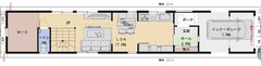 幅3mの家です。2階建て+屋根裏の収納庫8帖。 1階は寝室と浴室・洗面。2階にLDKと洋室。 8帖のロフトがあるので、収納スペースはバッチリです。