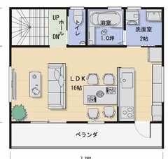1階が事務所、2~3階を住まいにした案です。 事務所併用とは言え、無機質なビルっぽい外観にしたくないので 2階バルコニーに丸みををつけて優しいフォルムに工夫。 1階ミーティング室15帖、その奥の事務室14帖。トイレ・給湯・洗面も完備。 2階へは住宅専用の玄関があって家族4人が暮らせるスペース。 LDK16帖にプラスして畳コーナー4.5帖♪