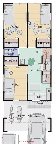 プラン31-間口4.8m(2.6間) 3階建て二世帯住宅 延床面積172㎡(52.0坪)