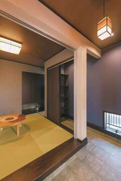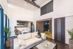 蔵のある和モダンなデザインを希望したFさん一家の家づくり。最初のプランから幾度かの変更を経た後、『静鉄ホームズ』の下田さんが提案したのが、思い切って和室を玄関前に作るという斬新な間取りだった。それまでは動線を意識したプランだったが、和室を取り入れることでイメージが大きく変わり、土間のある空間も夫妻の心を捉えた。「下田さんがいいアイデアを出してくれて、自分と意見が一致したのが大きかったです。話をするのが楽しくて、次はどんな提案をしてくれるのか、毎回ワクワクしていました」とFさん。アクセントクロスや照明などは同社のインテリアコーディネーターの意見を参考に、和テイストを適度に取り入れてセンスよく仕上がった。この夏は友達を招いてテラスでBBQをする予定とか。新居に賑やかな笑い声が響くに違いない。