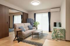 会社選びが滞ったとき、浮かんだのは30年以上前から「高気密・高断熱の家づくり」を語っていた友人の姿。代は変わっても、その姿勢が受け継がれていた『片山建設』に依頼を決めた。希望は一年中快適な平屋。ヒノキの香りが満ちた空間に、動線への配慮や2つのトイレなどの要望が落とし込まれた。夏もエアコン1台で快適な環境は、愛犬・麦ちゃんにとっても心地いい。