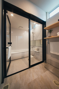 洗練された雰囲気を醸し出すバスルーム。落ち着いたトーンの内装が、まるでホテルのような非日常を演出します。毎日の入浴時間を、心と体を整える特別なひとときに