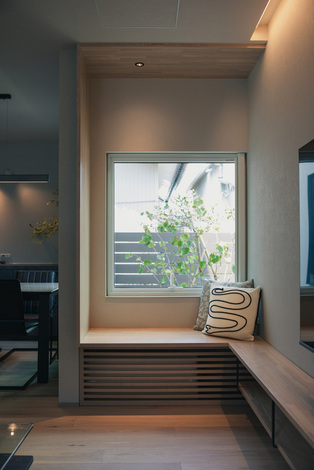 南側が道路に面した立地ながら、視線への配慮から開口部の確保が難しい条件。しかし、巧みなプランニングにより採光をしっかり確保。外からの視線を遮りつつ、室内にはやわらかな光が届く“光と影の完全攻略”を実現した、プライバシーと快適な明るさを兼ね備えた上質な住まいです