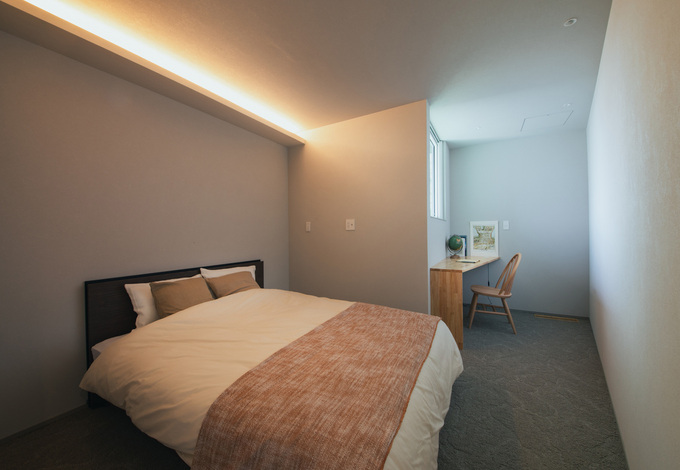 寝室と書斎がうまく調和した贅沢な空間で、ぐっすり眠れて、仕事も集中できる環境。忙しい毎日の中でも、リラックスできる時間と効率よく作業できる場所