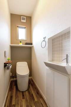 Nさんが『甲静ハウジング』と一緒に楽しみながら創った家は、洗面室・脱衣室・洗濯室・ファミリークローゼットを独立させつつ、繋がりを持たせた家事ラク動線が特徴。家族の笑顔が集まるLDKは、北欧テイストでコーディネートされ、小上がりのキッズスペースで子どもたちが仲良く遊ぶ。「便利な家事動線と豊富な収納のおかげで、子どもたちに自主性が生まれ、ストレスフリーです」とほほ笑む奥さま。おしゃれで明るい我が家に友達も呼びやすくなったと喜んでいる。