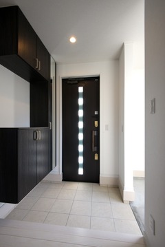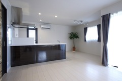 この家はスタイリッシュの一言に尽きると思う。黒の建具で統一され、白の壁とのコントラストが効いている。一階リビングダイニングは白い壁や天井で明るく、アクセントウォールが目を引く。ダイニングの主役ともいえるキッチンは黒のアイランド型、フラットで美しい白のカウンターに、ステンレスのレンジフードが映える。まさに見せるキッチンだ。一転2階廊下や階段で黒が使われ、居室には重厚な壁紙が貼られているなど、それぞれの空間がそれぞれ別の表情を見せる。が、それらはうまく一つにまとめられているから不思議だ。コーディネートの美しさだけではなく、玄関横に備えられた土間の収納や、天井高を活かした部屋とも呼べる小屋裏など、住空間を一つも無駄にしない家づくりの工夫もまたこの家の特徴だと思う。住み手のこれからの美しい生活を想像する事の出来る家だった。