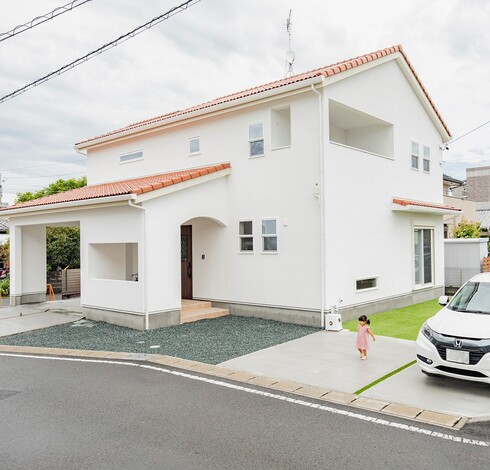 高性能住宅と聞くと、無機質でパターン化されたデザインの印象があるかもしれない。『モチケン』では、施主さんの好みに合わせてコーディネートし、オリジナルのデザインに仕上げる。例えば、温もりを感じる塗り壁と陶器瓦で南欧風に。片流れ屋根にガルバリウムを合わせてスタイリッシュに。あるいは、木質外壁をアクセントにしながらシンプルモダンに。すべてに共通しているのは、耐久性やメンテナンス性に優れた素材を選ぶこと。塗り壁には割れや汚れが少なく、世界中で使用されているSTO(シュトー)を採用し、木質外壁では腐食を防止するような設計・施工の工夫を施している。数十年先まで長い目で見た家づくり。『モチケン』のこだわりは、デザインや素材選びにも一貫している。