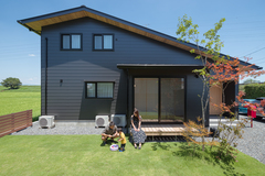 100坪近いゆとりある敷地で周囲の視線を気にせず、元気いっぱいのお子さんとお庭での時間を楽しめる住まいです。日照シミュレーションで日当たりを検討しながら、木の使い方や自然素材を吟味し、明るく開放的な空間を実現しました。